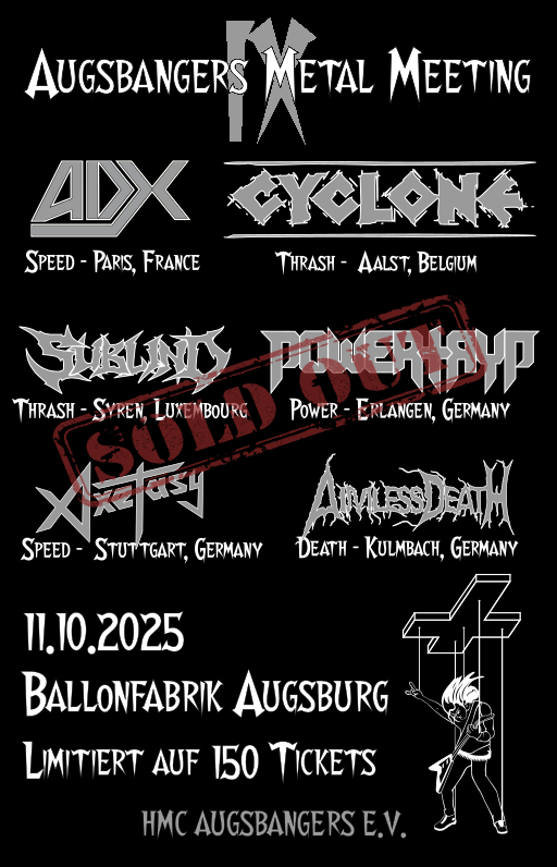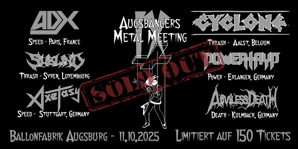 Das AMM IX am 11.10.2025 ist ausverkauft – danke für euer Vertrauen! Wie immer: solltet ihr noch ein Ticket benötigen, wendet euch bitte an claudi@augsbangers.de, wir